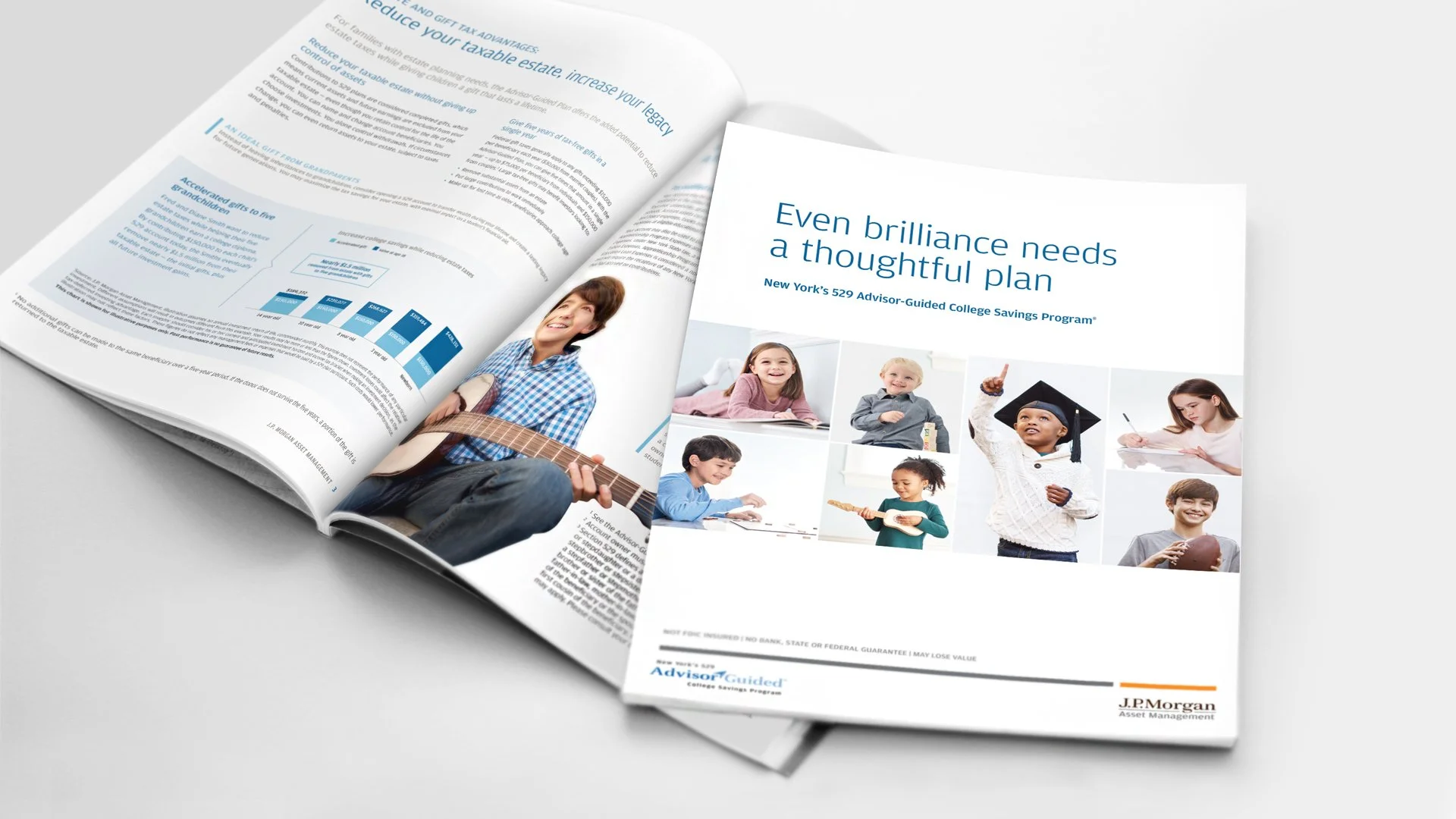 A selection of collateral for J.P. Morgan Asset Management to rebrand their 529 College Savings product. Included a full-day photoshoot with professional talent to create a photo library of images to use in various print and online collateral.